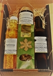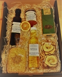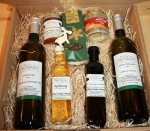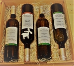 0,25 l steirisches Kürbiskernöl und 0,25 l Apfelessig im praktischen Holzträger